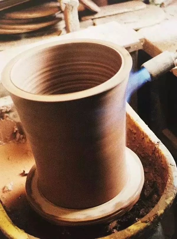 步驟2:將處理好的陶土放置在轉盤中心(轉盤由電機驅動旋轉,也可以用腳踩來驅動),當轉盤轉動,操作工首先將陶土拉成空心圓柱體,目的是確保成品的壁厚和受力均勻